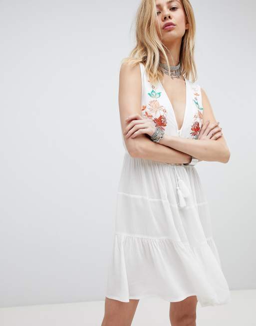 Kiss The Sky Boho Kleid mit Stickerei und tiefem Ausschnitt