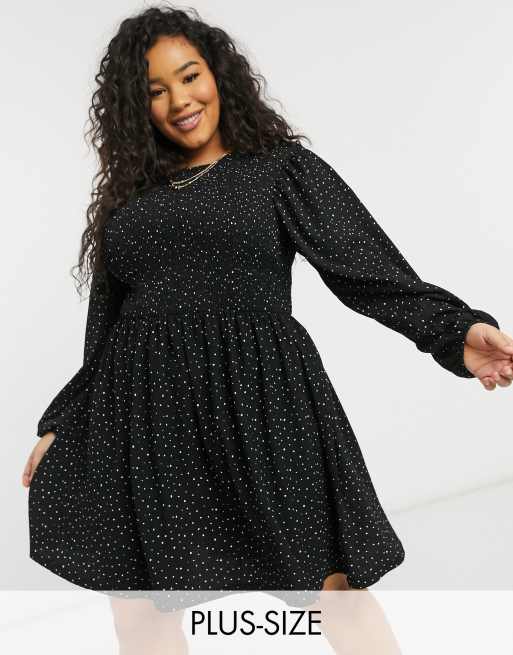 Black Floral Shirred Cuff Sleeve Skater Dress Simply Be