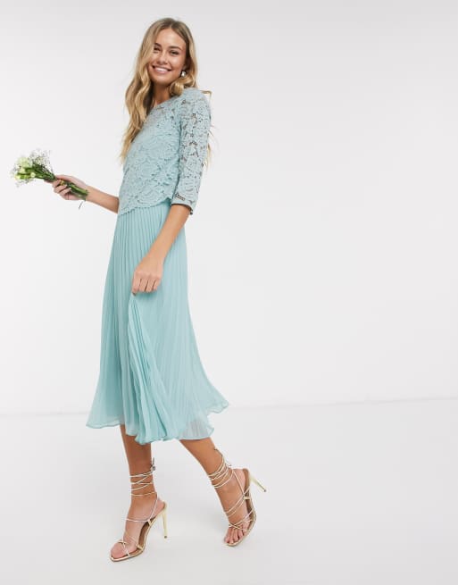 Oasis bridesmaid lace cap sleeve pleated dress in mint ASOS