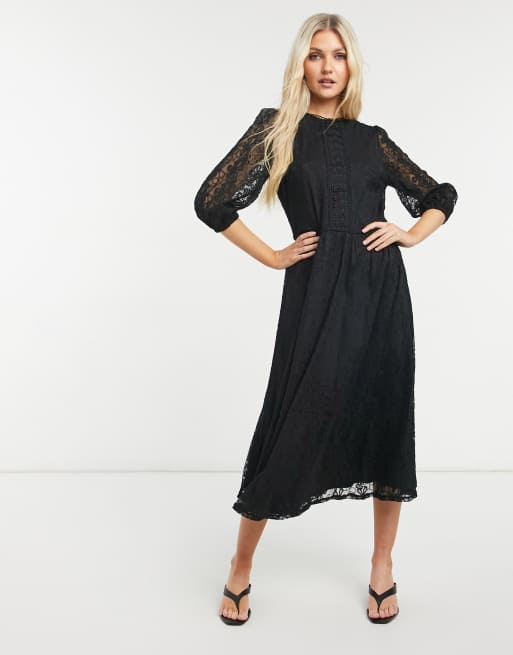 Oasis frill sleeve midi dress in black