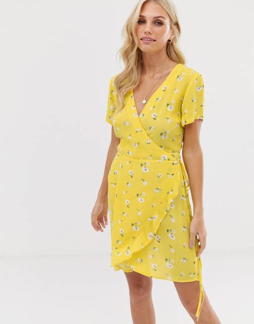 Stradivarius wrapped short dress in yellow