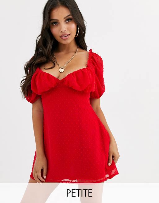 Missguided Petite dobby milkmaid skater dress in red ASOS
