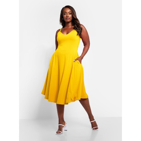 Yellow midi skater clearance dress