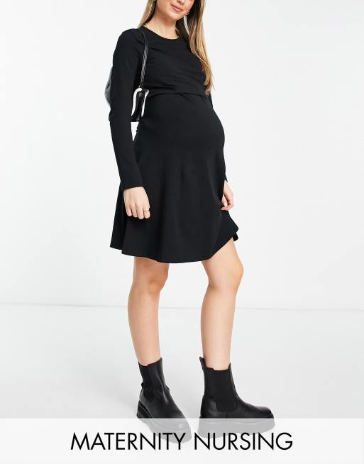 Maternity Black Long Sleeve Nursing Skater Dress New Look