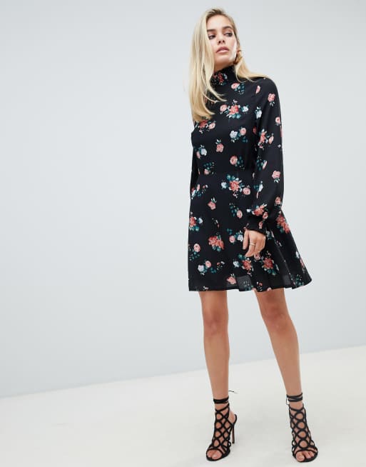Prettylittlething high neck skater dress clearance in floral, Lipsy chiffon burnout long sleeve mini skater tea dress in blue clearance