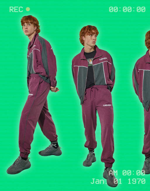 COLLUSION Unisex soft touch tracksuit joggers in plum co ord