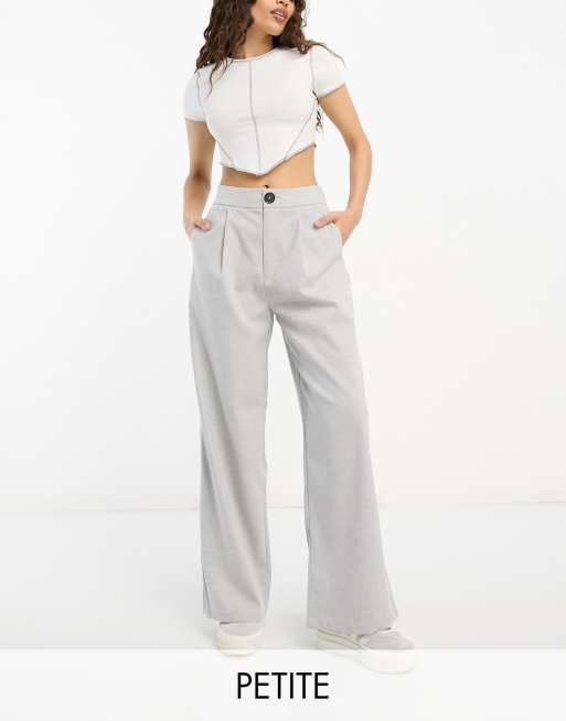 Stradivarius Petite tailored wide leg trouser in grey ASOS