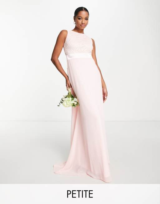 TFNC Petite chiffon maxi dress with lace scalloped back in whisper