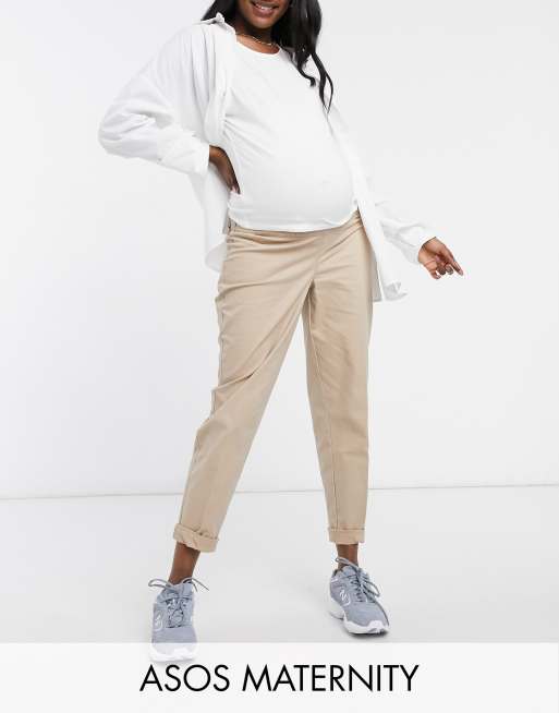ASOS DESIGN Maternity chino trousers in stone with under the bump