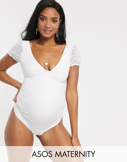 ASOS DESIGN maternity swimsuit with broderie trim in white ASOS
