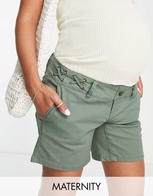 Mama.licious maternity denim shorts with cross detail in khaki ASOS