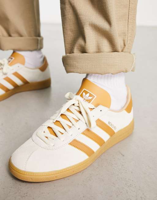 adidas Originals Munchen trainers in cream and brown with gum sole