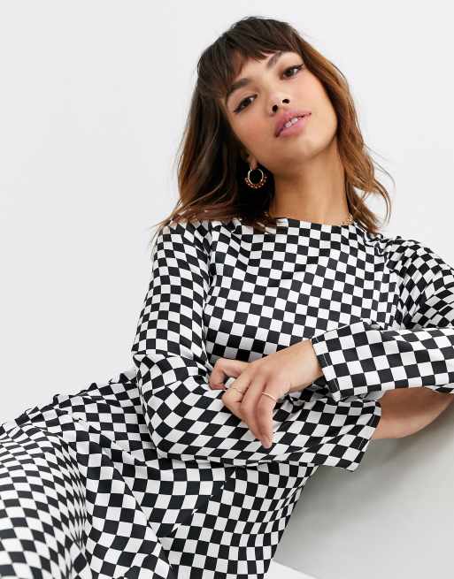 ASOS DESIGN checkerboard maxi dress with long sleeves