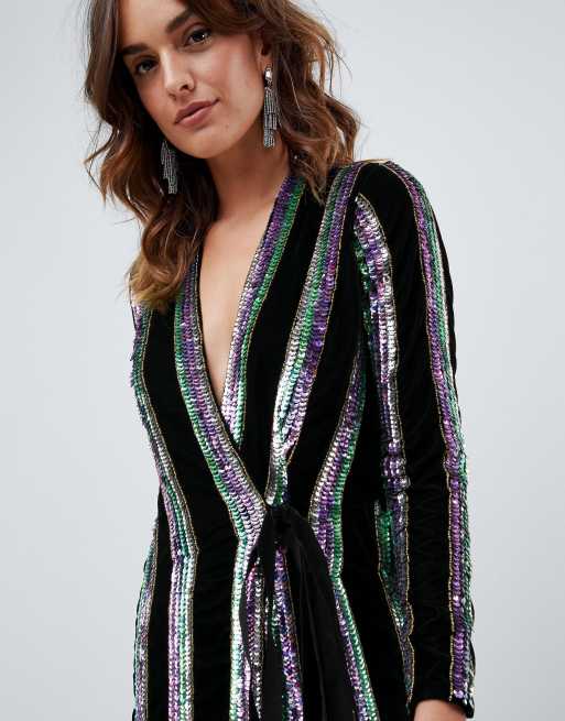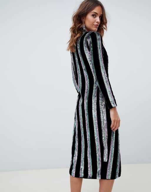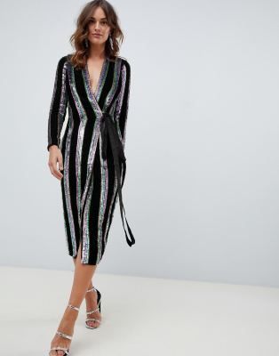 Asos design wrap midi clearance dress in velvet stripe sequin