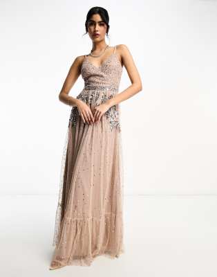 Maya v neck maxi tulle dress with contrast tonal delicate sequins