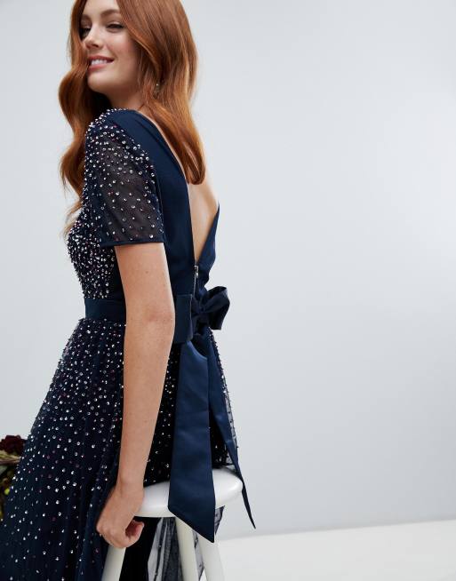 Maya embellished midi dress with tulle skirt in navy Blue Smart