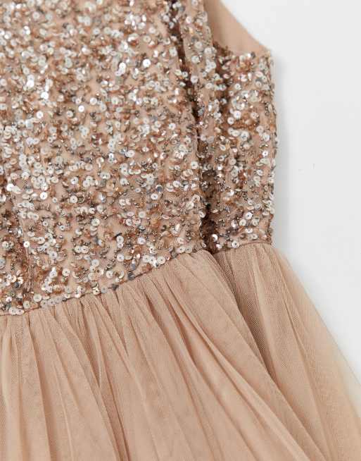 Maya bridesmaid halter neck midi tulle dress clearance with tonal delicate sequins in taupe blush, Maya Maternity Bridesmaid V Neck Maxi Tulle Dress With Tonal clearance