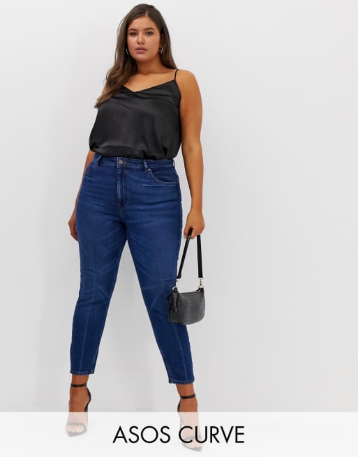 ASOS DESIGN Curve high rise original mom jeans in darkwash ASOS