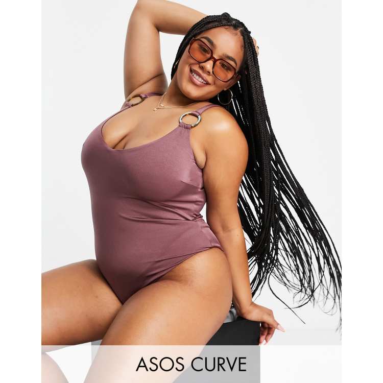 ASOS DESIGN Curve ring detail swimsuit in mauve