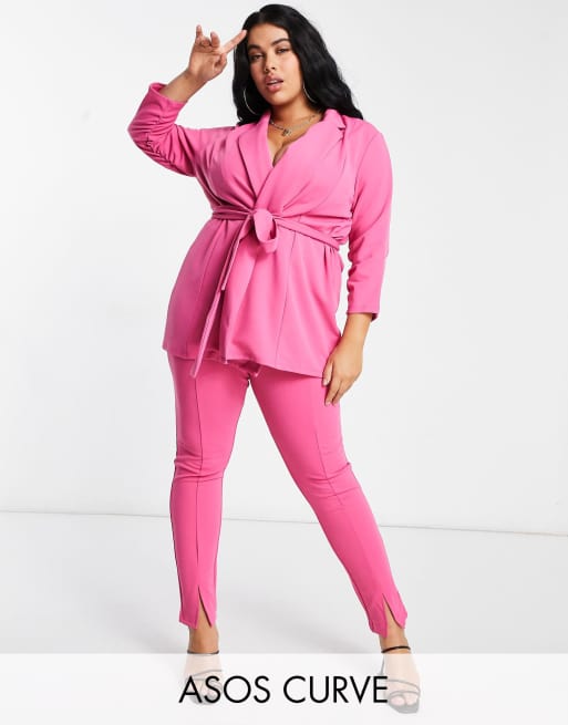 ASOS DESIGN Curve jersey slim split front suit trousers in magenta