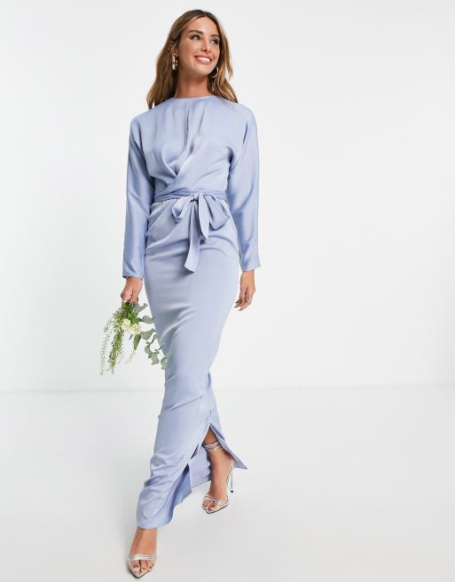 Asos blue bridesmaid clearance dresses, ASOS DESIGN Bridesmaid maxi dress with batwing sleeve and wrap clearance