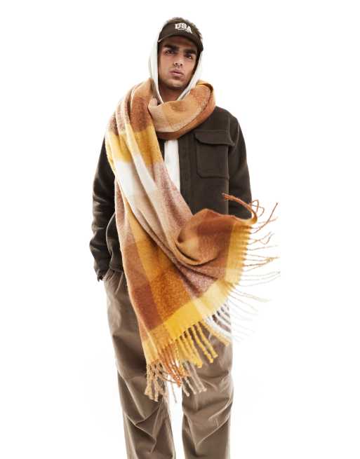 Asos clearance shawl wrap, ASOS DESIGN oversized plaid scarf in yellow and burnt orange clearance