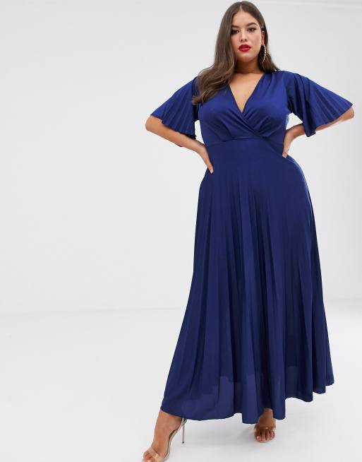 Asos design curve kimono pleated clearance maxi dress, ASOS DESIGN Curve Exclusive Pleated Slinky Kimono Midi Dress clearance