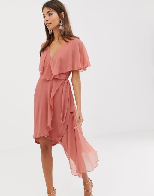 ASOS DESIGN cape back dipped hem midi dress ASOS