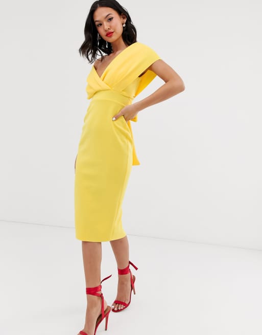 Asos design fallen shoulder midi clearance pencil dress, ASOS DESIGN fallen shoulder midi pencil dress with tie detail clearance