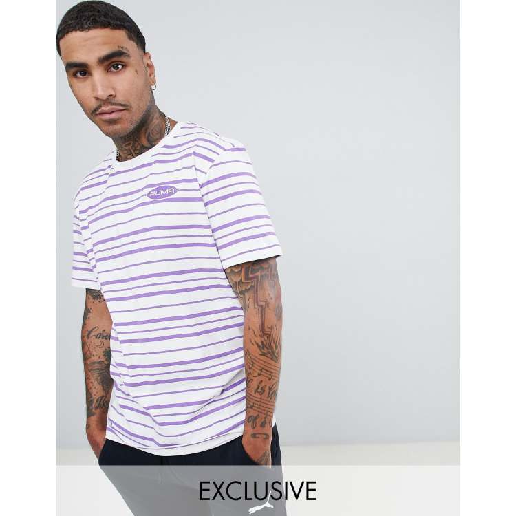 Puma retro striped t shirt in purple Exclusive at ASOS