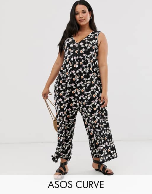 Asos clearance plus jumpsuit, ASOS DESIGN curve curved smock jumpsuit in grunge floral print ASOS clearance