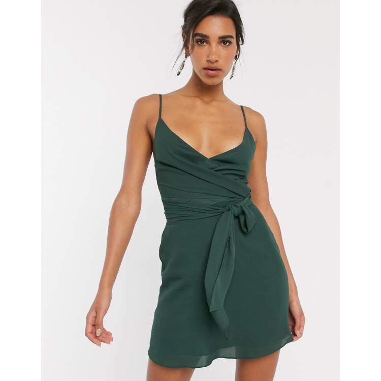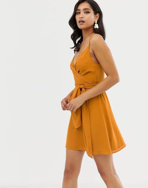 Asos design cami wrap clearance mini dress with tie waist, ASOS DESIGN cami wrap midi dress with tie waist clearance