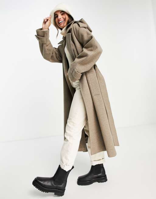 ASOS DESIGN slouchy belted coat with hood in mushroom ASOS