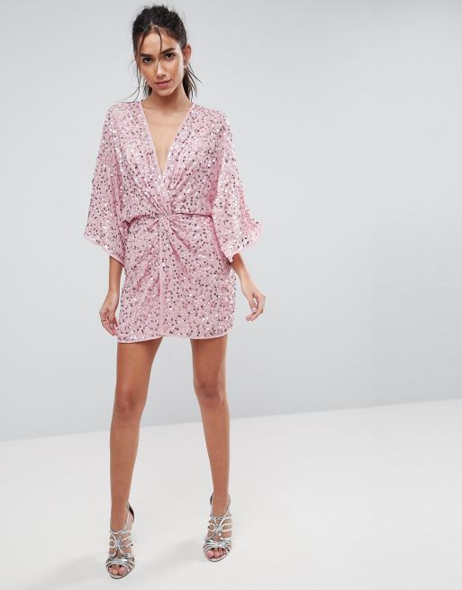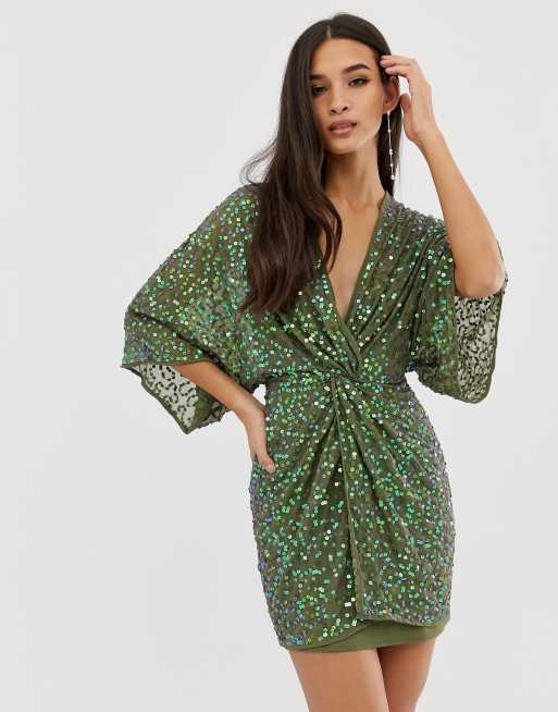 Asos design scatter sequin clearance knot front kimono mini dress