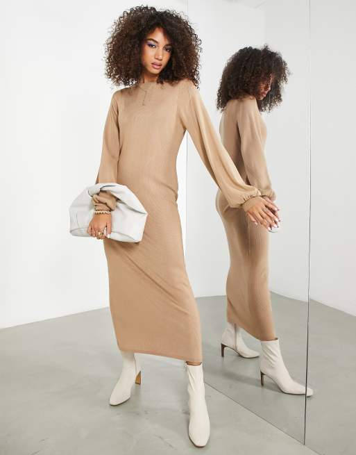 ASOS EDITION fine knitted rib column maxi dress in camel ASOS