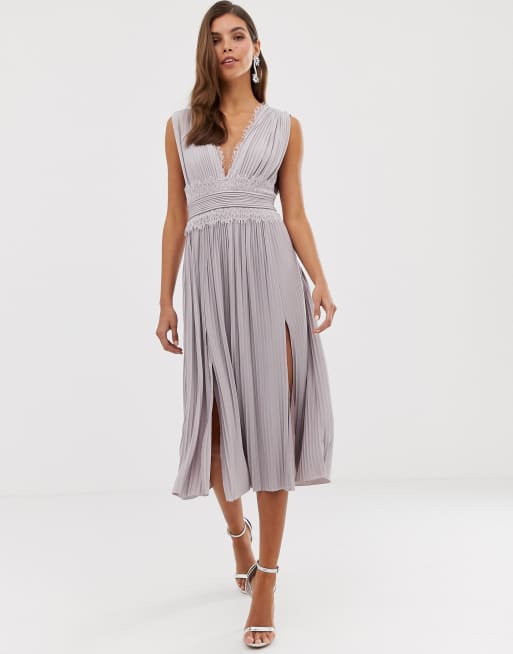 Asos design premium lace clearance insert pleated midi dress, ASOS Premium Lace Insert Pleated Midi Dress clearance