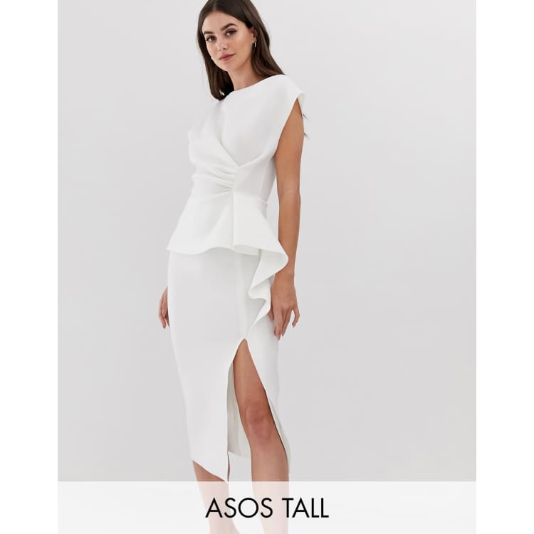 ASOS DESIGN Tall peplum pencil midi dress with tuck detail ASOS