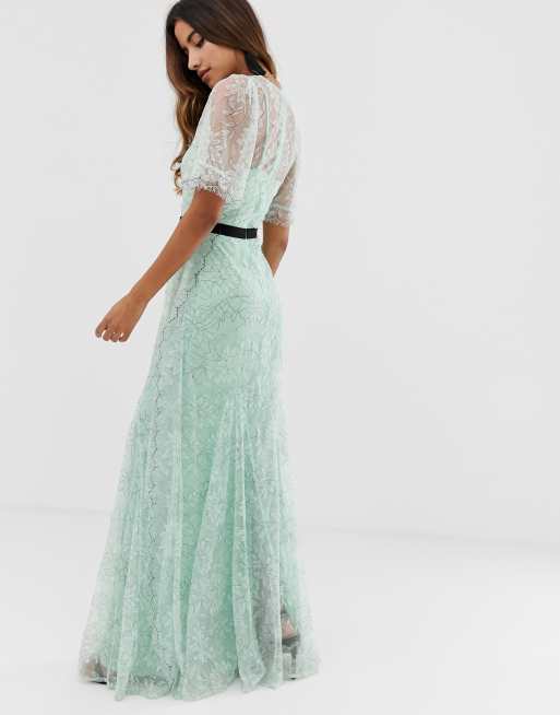 Forever U lace maxi dress with contrast waistband in mint ASOS