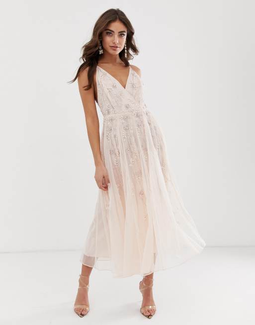 Asos design strappy midi clearance dress in delicate floral embellishment