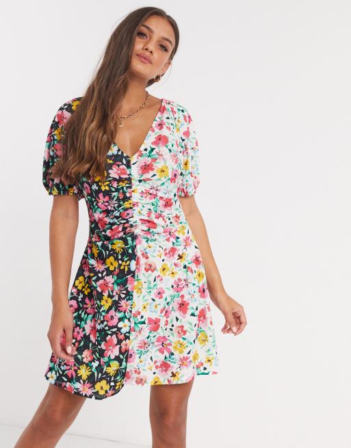 ASOS DESIGN Petite mini dress with ruching in contrast floral