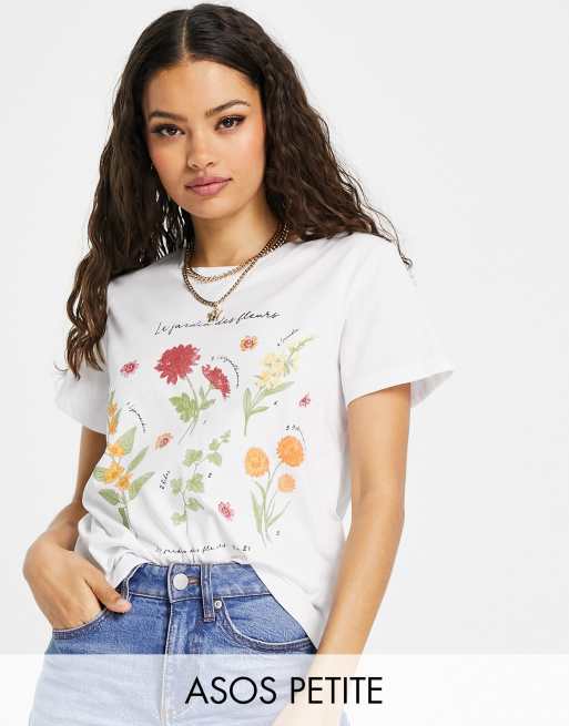 ASOS DESIGN Petite boxy t shirt with botanical graphic in white ASOS