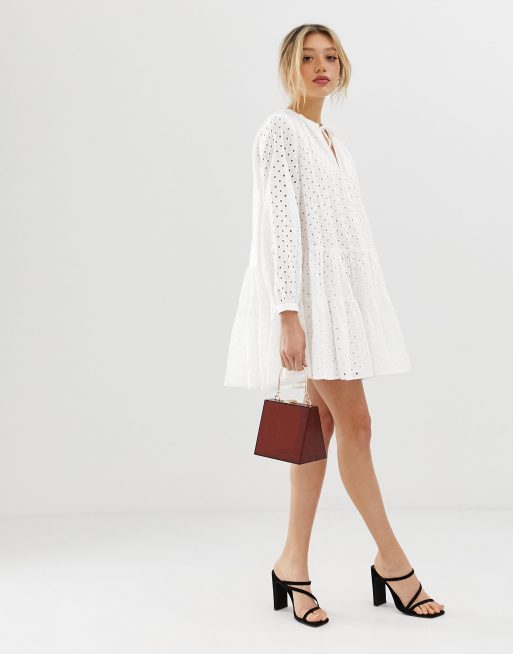 ASOS DESIGN tiered trapeze mini dress in broderie