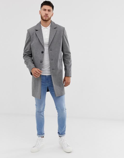 Asos design wool mix clearance overcoat in light gray, ASOS DESIGN Plus wool mix overcoat in light grey clearance