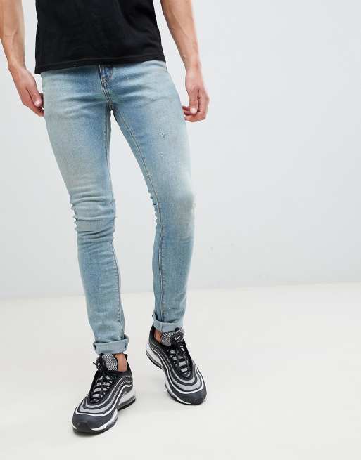 ASOS DESIGN super skinny jeans in mid wash blue with abrasions