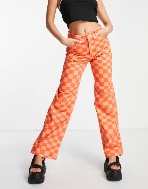 Asos clearance checkerboard pants, NA KD checkerboard wide leg jeans in orange ASOS clearance