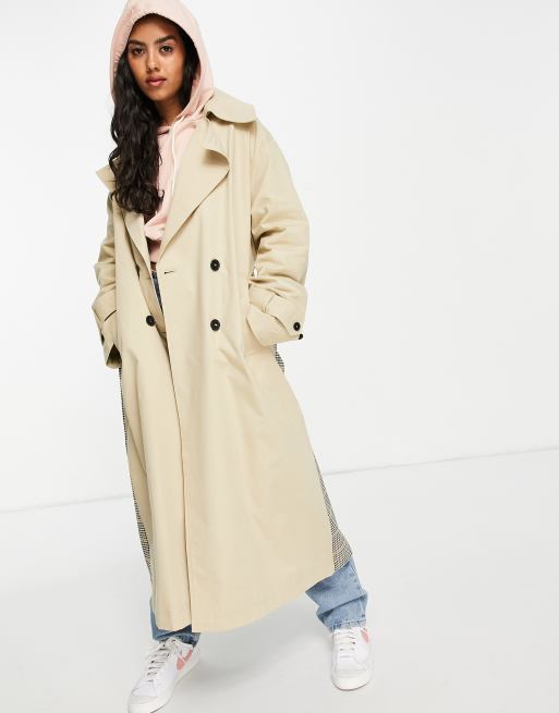 Asos design trench coat in clearance red check, ASOS DESIGN check spliced trench coat clearance