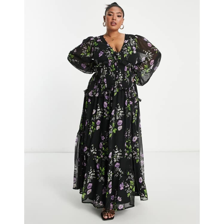 ASOS DESIGN Curve button through pintuck maxi dress in black