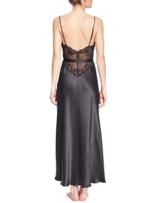 Pure Silk Long Chemise Nightdress with Deep Leaver Lace
