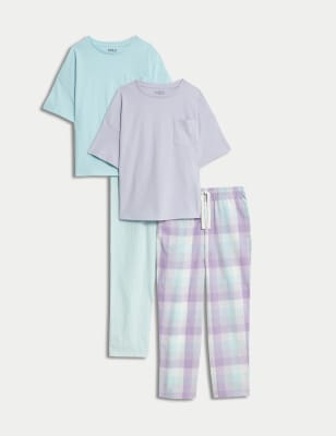 2pk Pure Cotton Striped Checked Pyjama Sets 6 16 Yrs M S DK