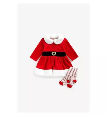 Mothercare Festive Santa Dress and Tights Set 1 3 Months 5.70